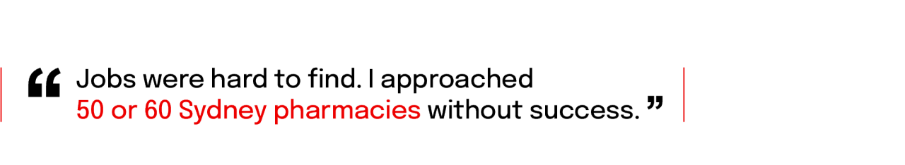 “All pharmacists need to work as a supervised intern before they can be registered but, in 1991, jobs were hard to find,” he says. “I approached 50 or 60 Sydney pharmacies without success.”