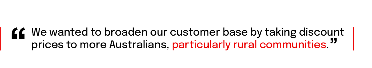 “We wanted to broaden our customer base by taking discount prices to more Australians, particularly rural communities where people can miss out on lower prices and special offers,” Fawaz says.